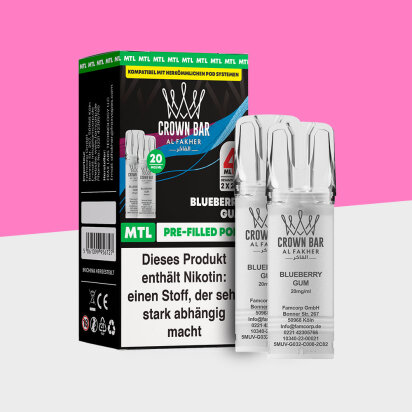 - 1x Al Fakher Crown Bar 600 – Blueberry Gum – MTL - Pod (2er Pack)